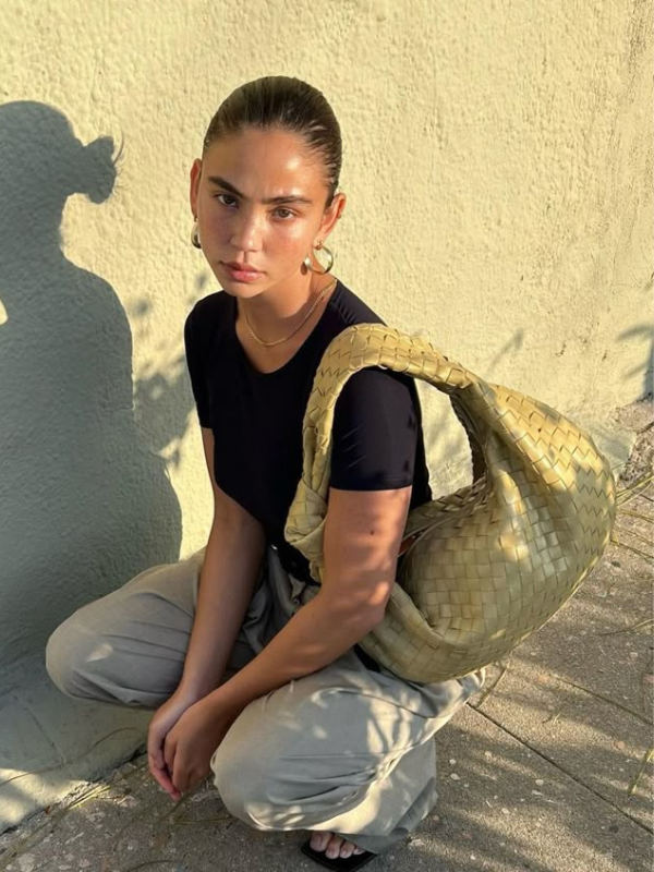 This versatile bag, which can be worn on the shoulder or as a crossbody, offers a trendy and sophisticated look suitable for any occasion.